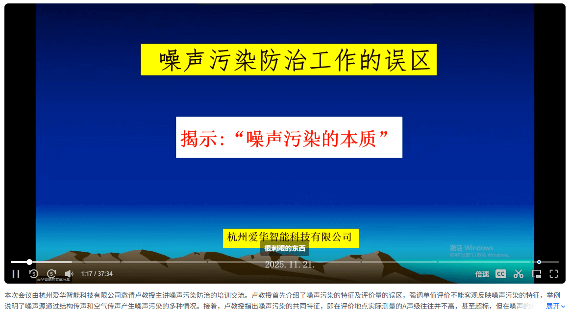 2025年11月21日,杭州愛(ài)華智能科技有限公司有幸邀請(qǐng)了原廣州市環(huán)境監(jiān)測(cè)中心站教授級(jí)高級(jí)工程師盧慶普老師前來(lái)交流指導(dǎo),并通過(guò)線下和線上視頻會(huì)議模式,為從事噪聲監(jiān)測(cè)及污染防治工作的廣大客戶朋友做了“噪聲污染防治工作誤區(qū)與本質(zhì)探析”專題培訓(xùn)交流會(huì)。